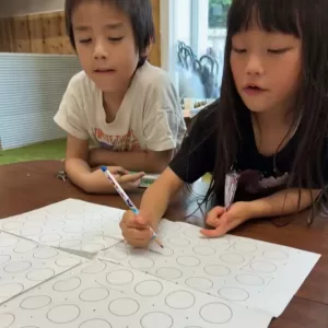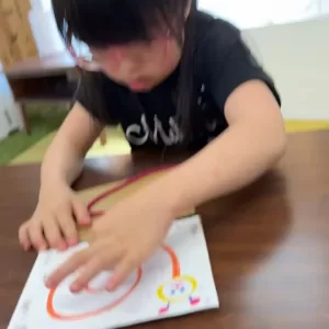 自分の陣地を広げたいけど、他の子にもとられないように、紙全体をみたり、観察したり、注意しながらすすめていって、頭をフル回転( *´艸`)