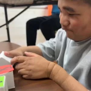 なかなかうまくいかないけど、両手を使って挑戦し続けるA君(⋈◍>◡<◍)。✧♡