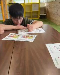 以前は、やみくもにカードを置いていたA君もいつの間にか、じっくりと絵柄をみてマッチングさせていきます!
