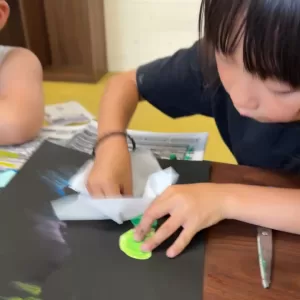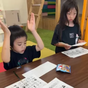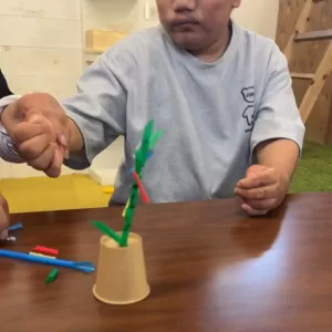 色んな活動に取り組んでいく中で、指先を沢山使って脳を刺激するのはもちろん、できない事ができるようになったり、やってみると意外と簡単!と感じたり、お友達のやり方をみて学んだり、教え合ったり、、集中力が身についたり、色んな方法を発見したり・・・